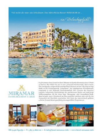 HR-51410 Opatija • T: +385 51 2800-00 • E: info@hotel-miramar.info • www.hotel-miramar.info